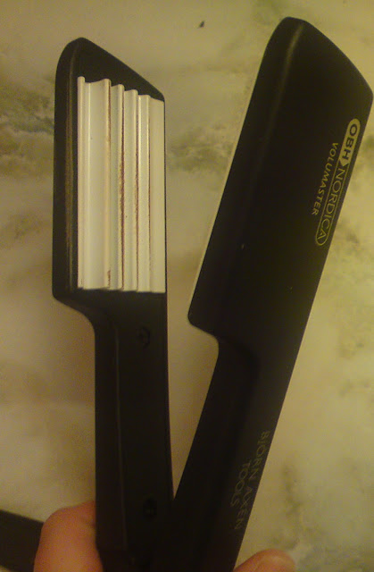 Det er en kreppetang som kun skal brukes helt inne ved hårfestet. Den løfter håret fra hodebunnen slik at jeg straks får et større hår. Veldig enkel å bruke. Man må bare huske å ikke ta det ytterste håret, for da får man kreppfrisyre :) Jeg trenger ikke å vaske håret annen hver dag lenger heller, for det holder seg rent mye lengre.